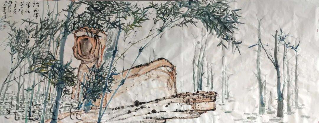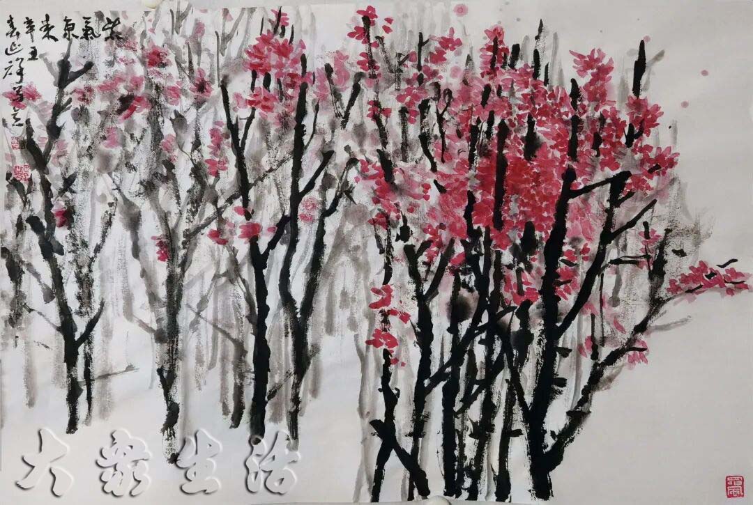 “三生万物”意味着本源、对立、中和三者完备,宇宙进入无限化生的阶段。在绘画中,即点、线、面三者有机融合、相互转化、互为依托,形成无穷无尽的视觉形态与意境空间,即三生万象。
